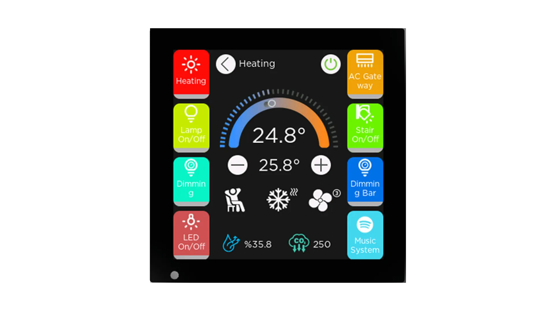 Eleganz, Technologie und Komfort vereint in einem einzigen Gerät. Der Interra iX3 ist eine kompakte Wandeinheit mit integrierten Sensoren für Temperatur, Luftfeuchtigkeit, Helligkeit und Luftqualität.